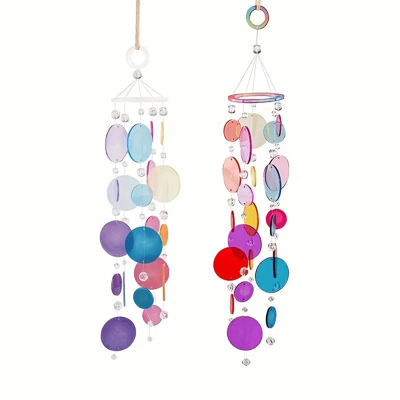 Campana a vento con cerchi in resina dai colori vivaci, un tocco allegro per ogni angolo.