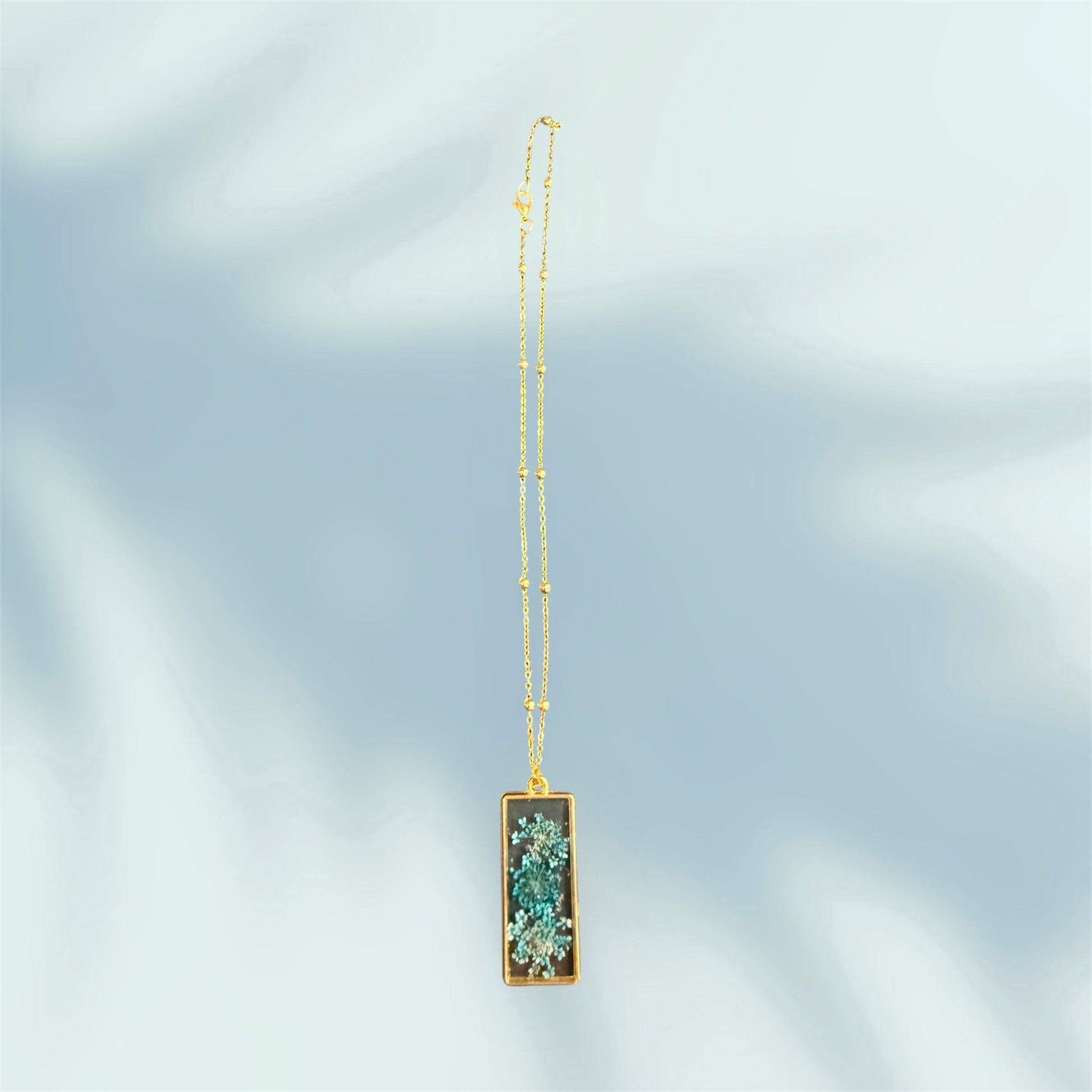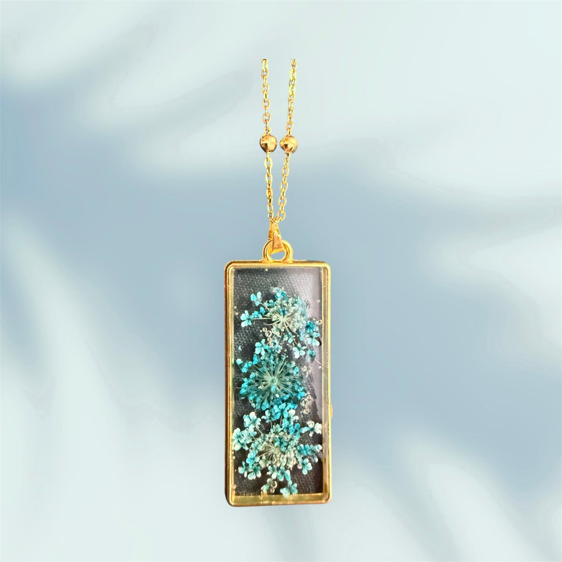 Blue flowers in clear resin, evoking calmness and ocean depth.
