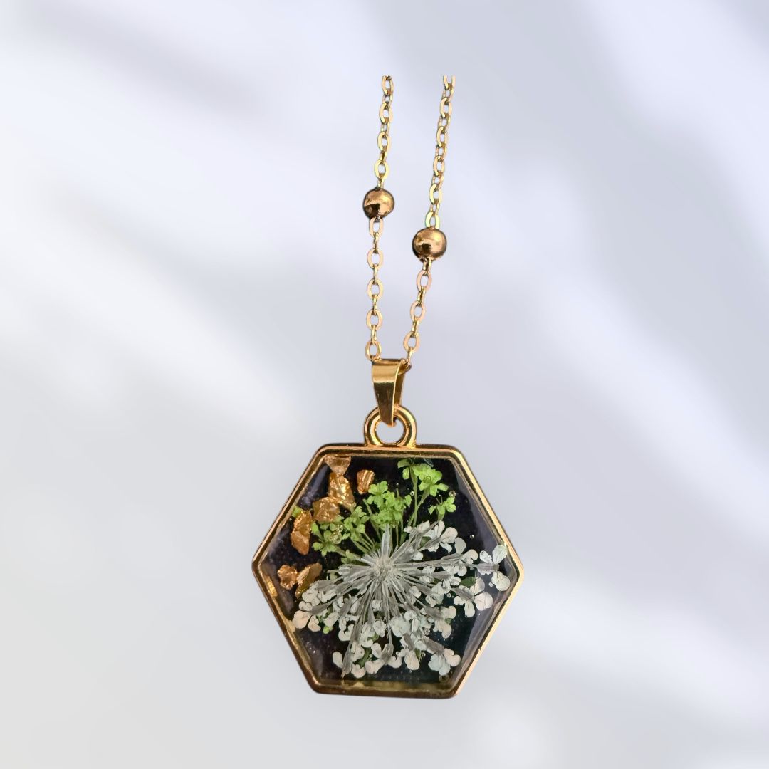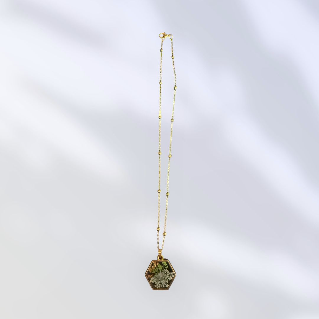Fiori verdi racchiusi in resina per uno stile fresco e rigenerante.
