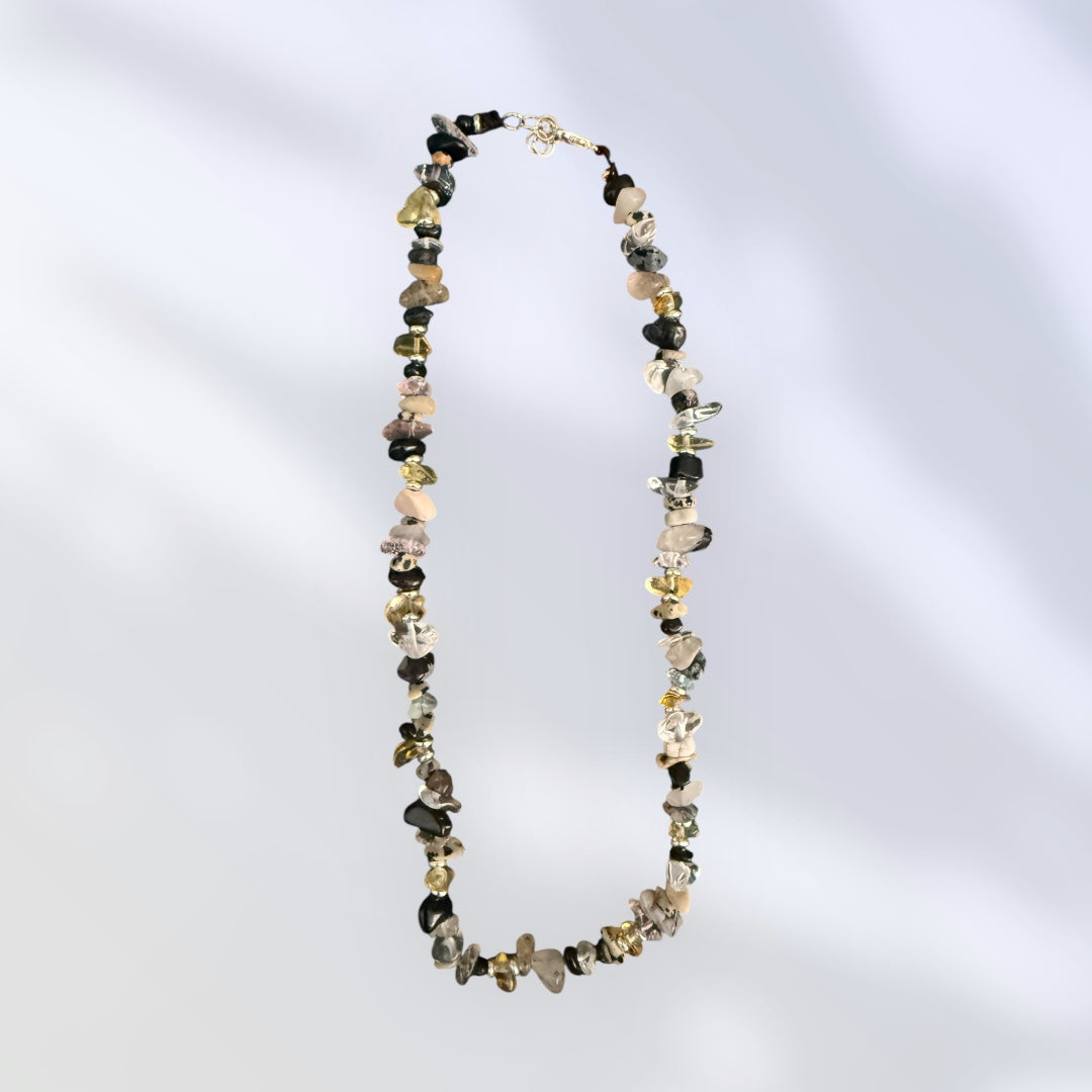Pietre bianche e nere unite in un design elegante e simbolico.