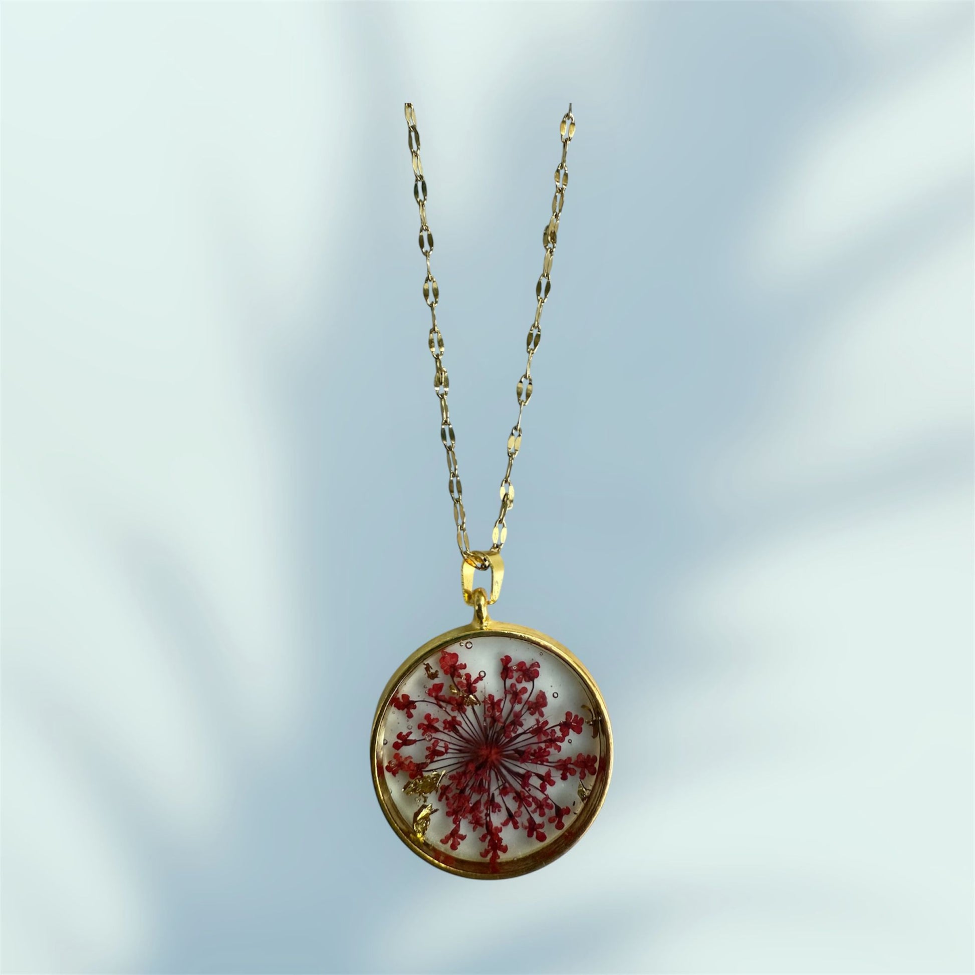 A bold red flower in resin, representing strength and passion.