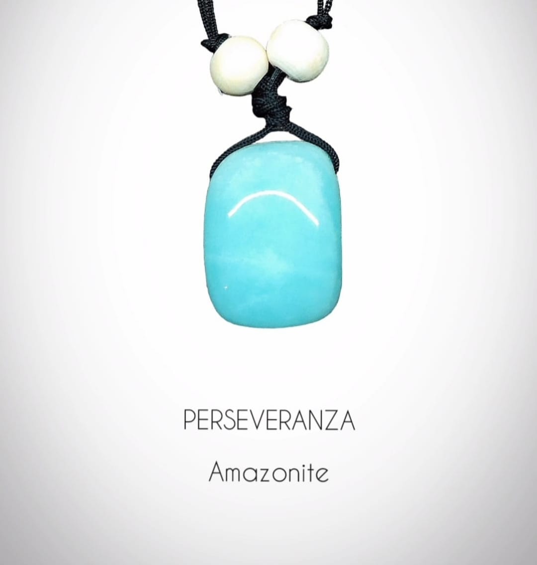 L'amazzonite lavora sia sul quarto sia sul quinto chakra. Quando è posizionata sul quarto chakra, cioè il centro energetico all'altezza del cuore, migliora le interazioni con il mondo fuori, aiuta a bilanciarsi con l'ambiente e a essere meno critici verso gli altri. Quando è posizionata sul quinto chakra, il centro energetico della gola, aiuta a comunicare le idee e le emozioni, a non vergognarsi del proprio modo di vedere il mondo ed essere disposti ad assumerci il rischio del nostro pensiero.