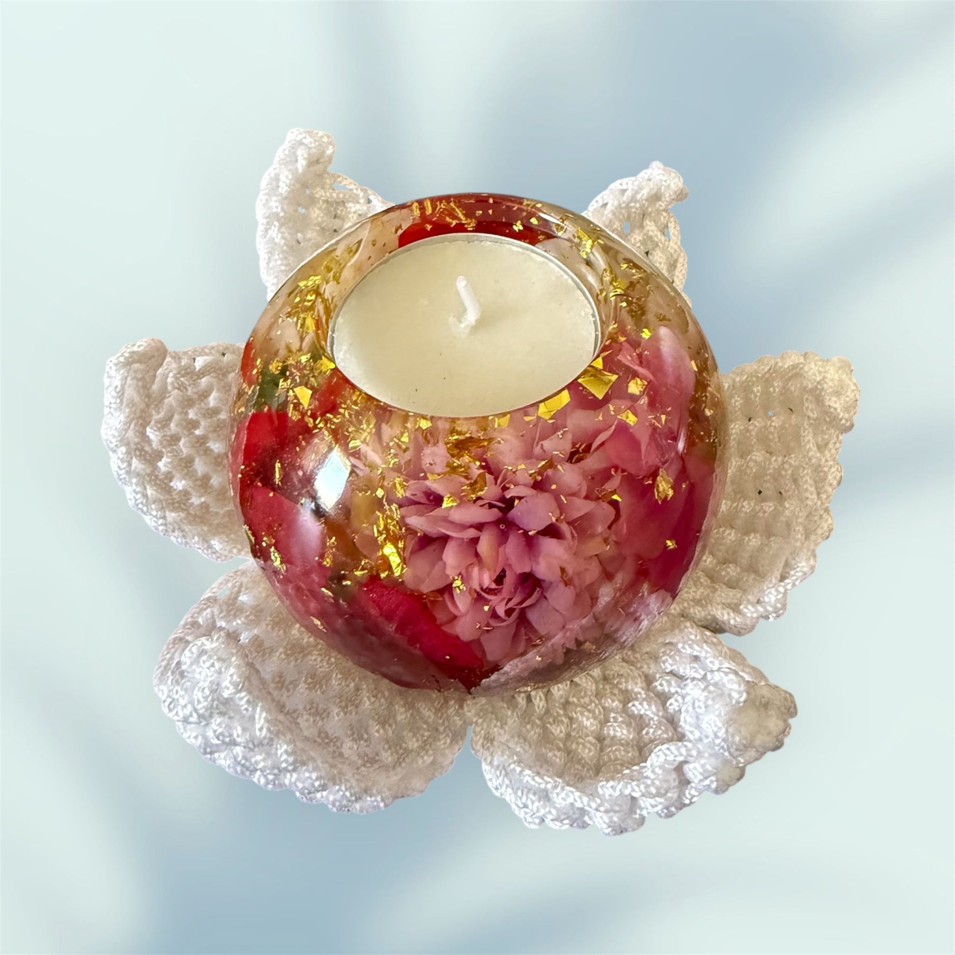 A delicate resin candle holder, decorated with real flowers embedded within. Every petal holds emotion, turning each flame into poetry. Ideal for creating a romantic and nature-inspired ambiance.