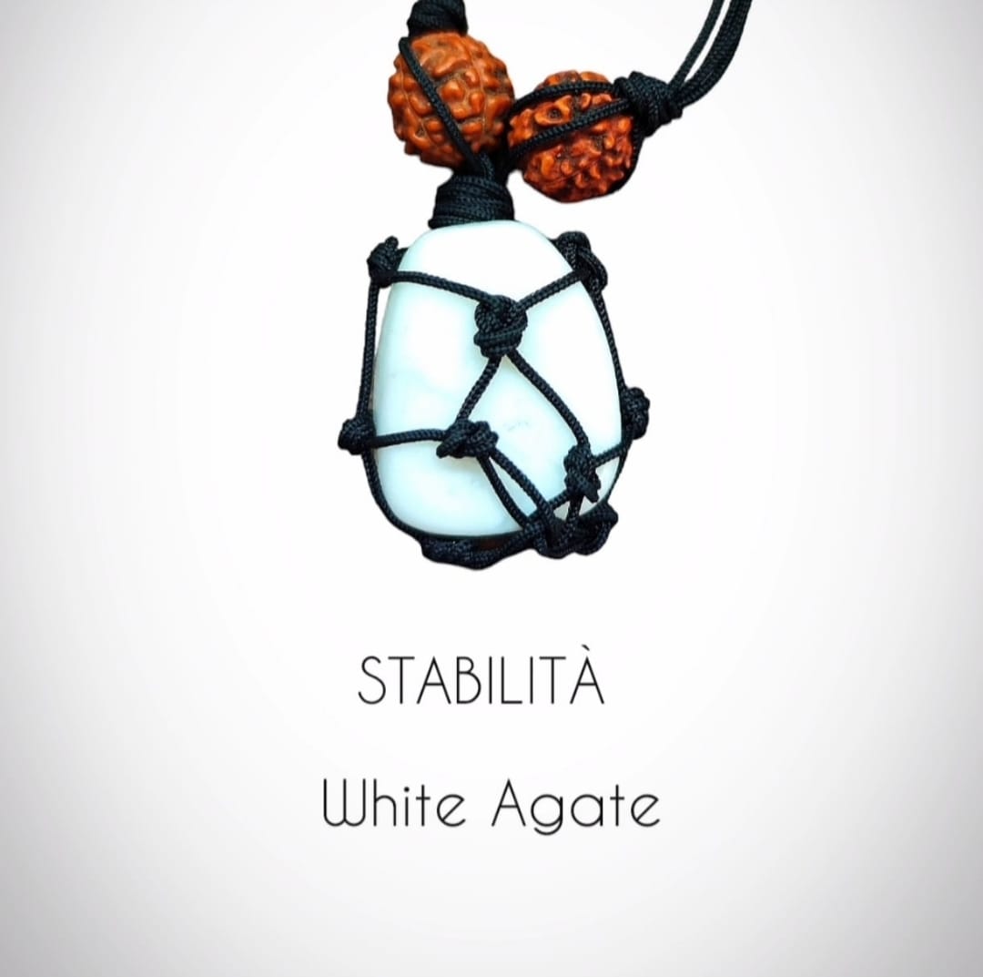 L'agata bianca stimola l'equilibrio tra Yin e Yang. Acuisce la concentrazione, le capacità analitiche e la precisione; dà sicurezza, rafforza il pensiero logico e promuove l'introspezione, la stabilità e il realismo. Vitalizza i corpi fisici, emozionali e mentali. Allinea i corpi fisici all'etereo.